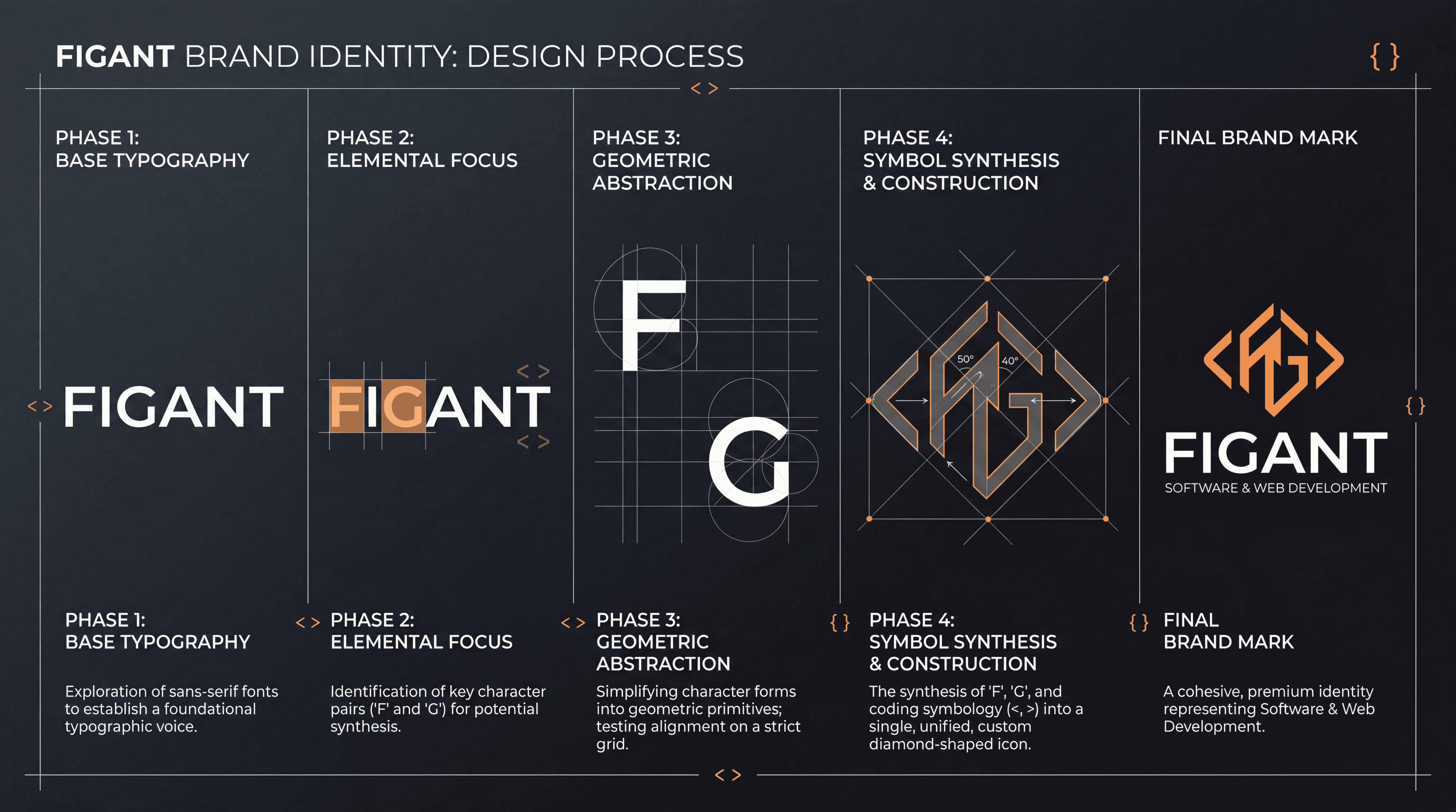 FIGANT is a conceptual brand identity project created for a modern software and web development company. The goal was to design a clean, scalable, and tech-driven visual identity inspired by code, structure, and precision.